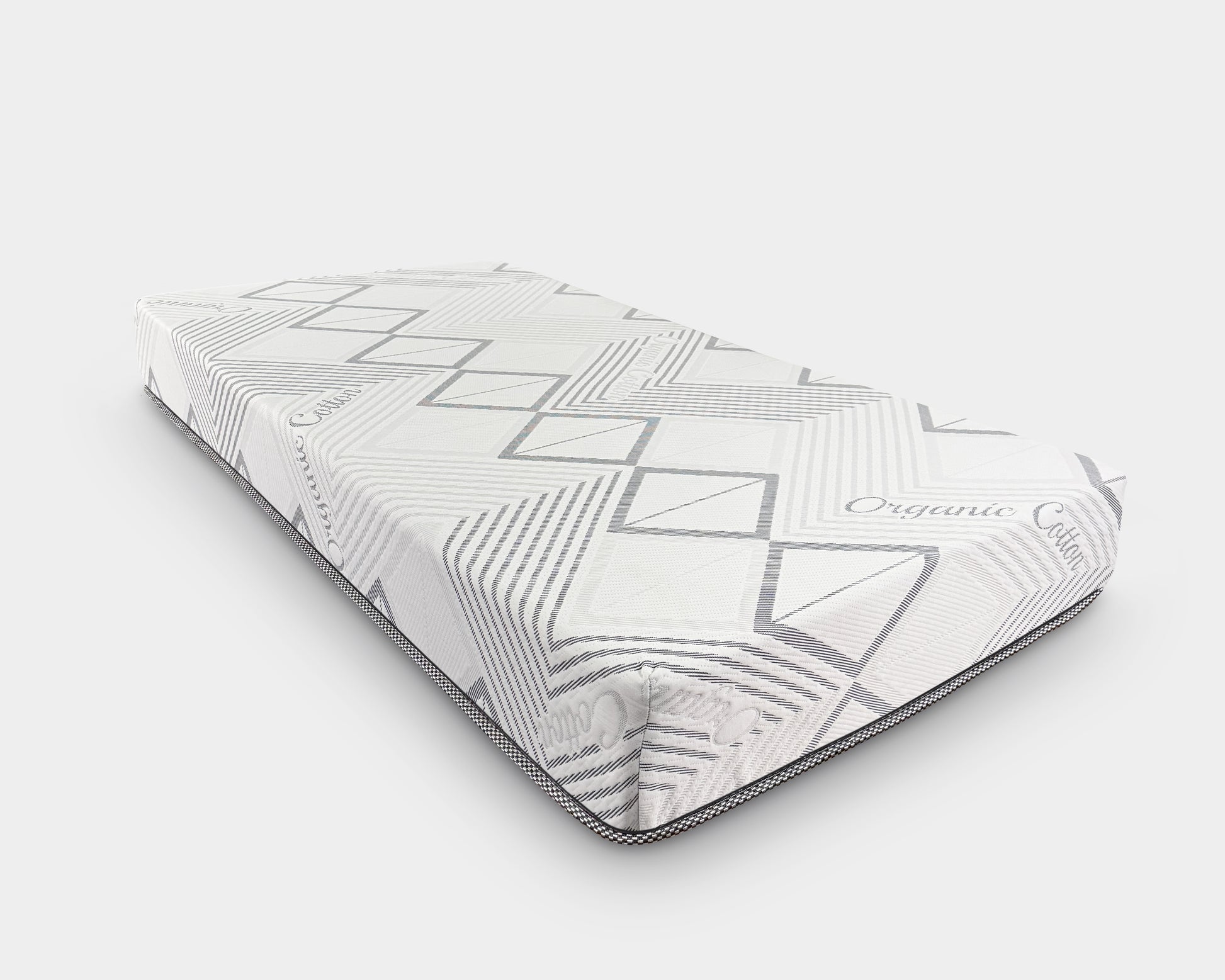 The top cover is crafted from soft, breathable organic cotton, providing a comfortable sleeping surface.